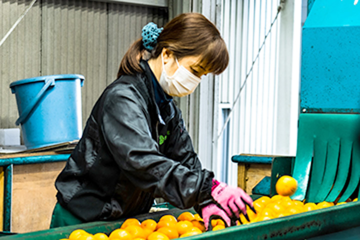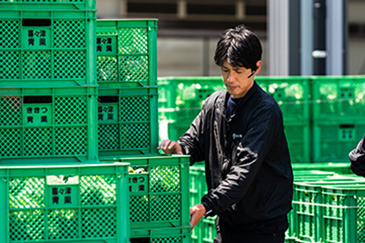 量販店と商談をし発注を請け、プロの目で仕入れた商品や取引先の農家さんから仕入れた、新鮮な野菜や果物を納品しています。袋詰め、箱詰めなどの加工作業から販売店へ商品の配送も行っています。