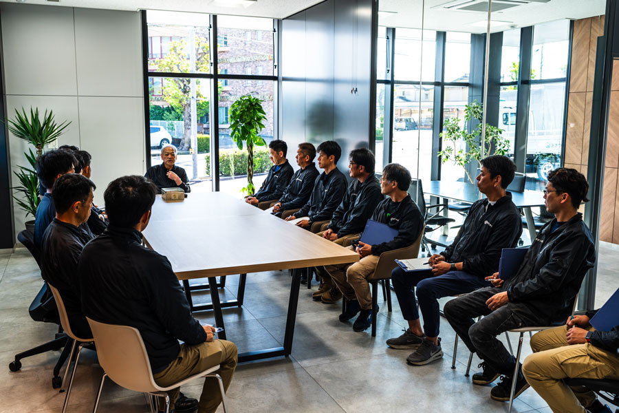 昭和51年 先代(左)と2代目 諸岡敏治氏(右)